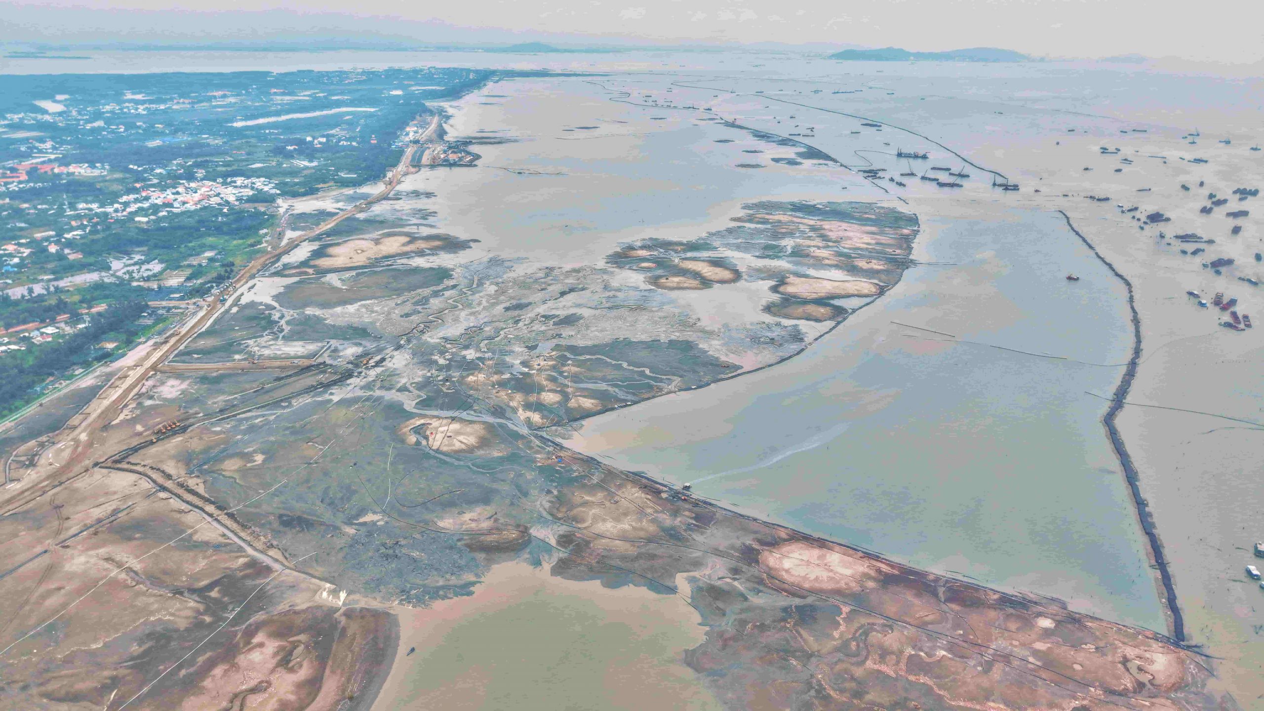Hình ảnh “lấn được 2 km”, độ ngang ~23 km, tiến hành lấn biển 6 km (tính tổng quy mô kéo dài bờ biển).