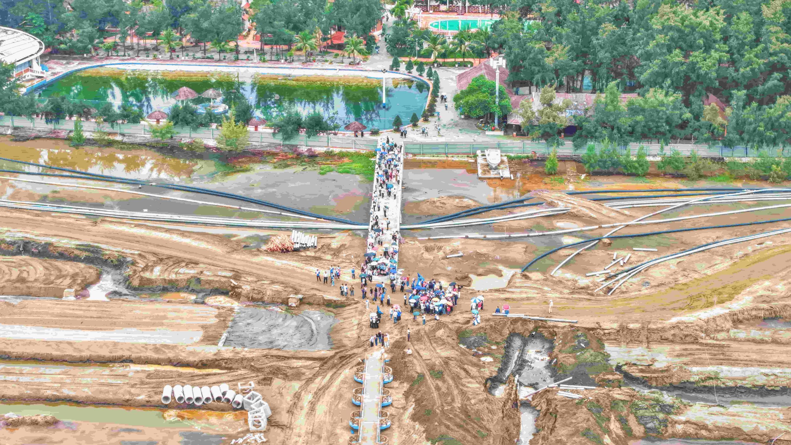 Các video cập nhật vào giữa tháng 9/2025 cho thấy khu vực thi công sát mép biển bắt đầu lộ móng, mố đỡ minh chứng việc triển khai hạng mục kỹ thuật biển đã được đẩy mạnh.